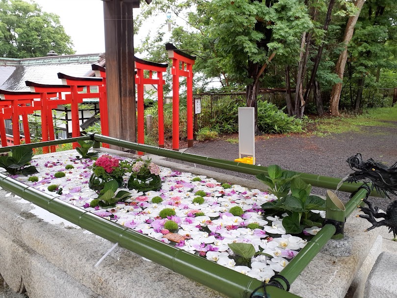 The images are HANATEMIZU at Otaru Sumiyoshi Shinto Shrine where is popular as a spiritual site.