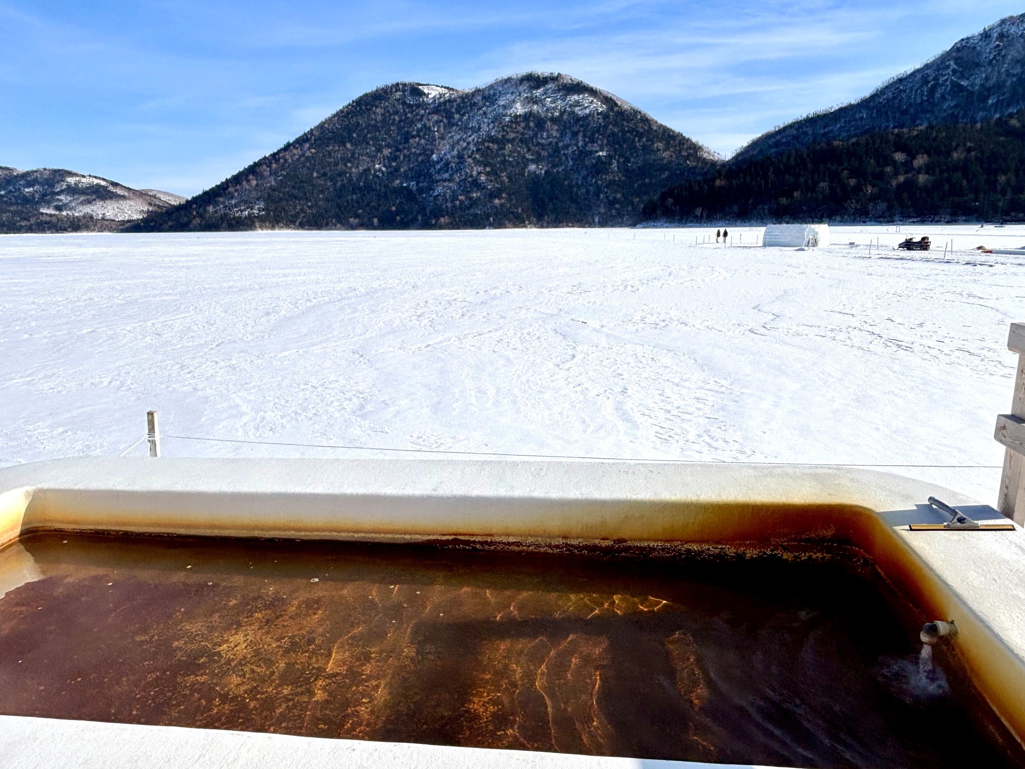 You can walk on the frozen lake and see igloos, bath in an open-air hot spring bath, and soak your feet in a foot bath.